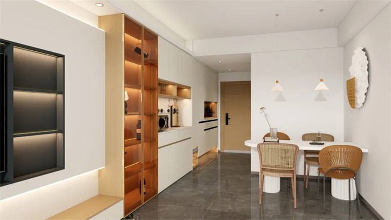 餐邊柜與玄關(guān)柜、電視柜一體設(shè)計(jì)