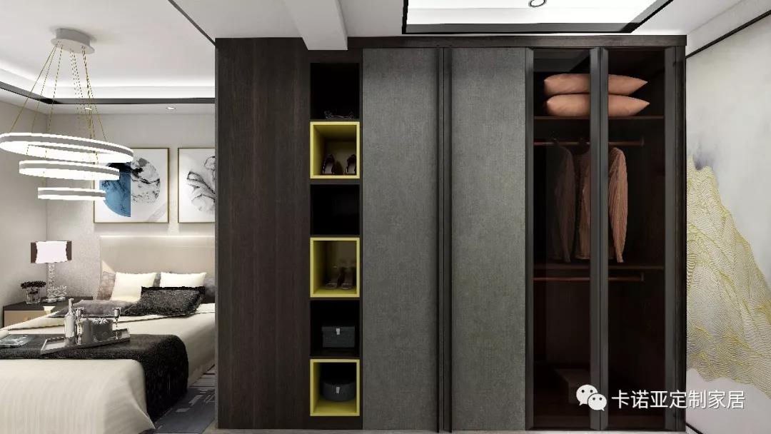 設(shè)計(jì)巧思:到頂?shù)墓耋w收納性能強(qiáng)大,收納柜大小不一卻合理有序,滿足收納不同衣物床品的需求。柔軟干凈的寢具,讓奔波一天的軀殼,在這里得到全身心的放松。
