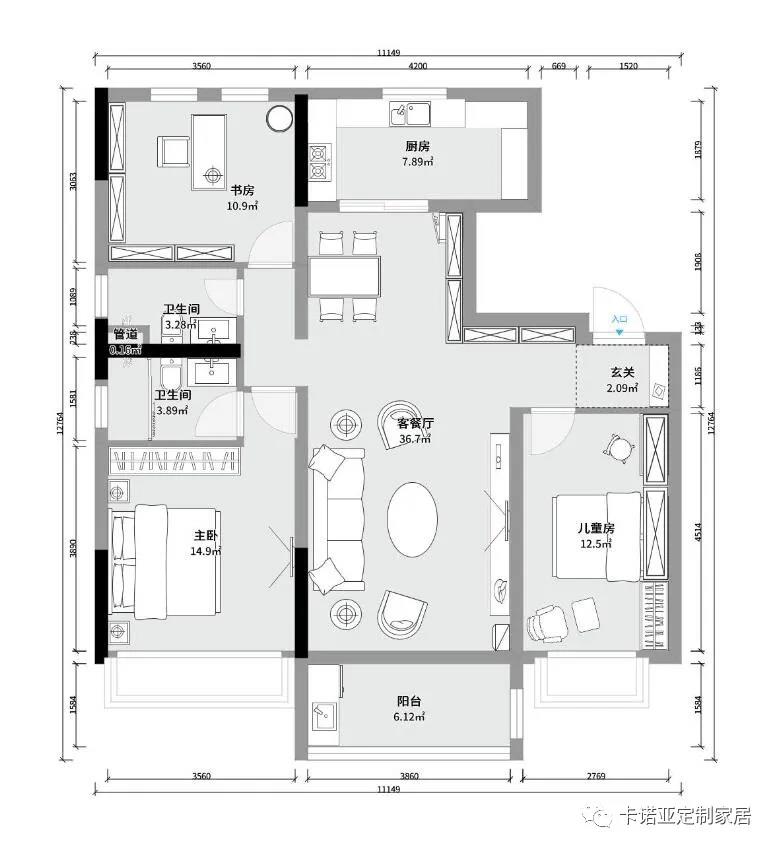今天小卡分享一套極簡風(fēng)家居裝修案例,
