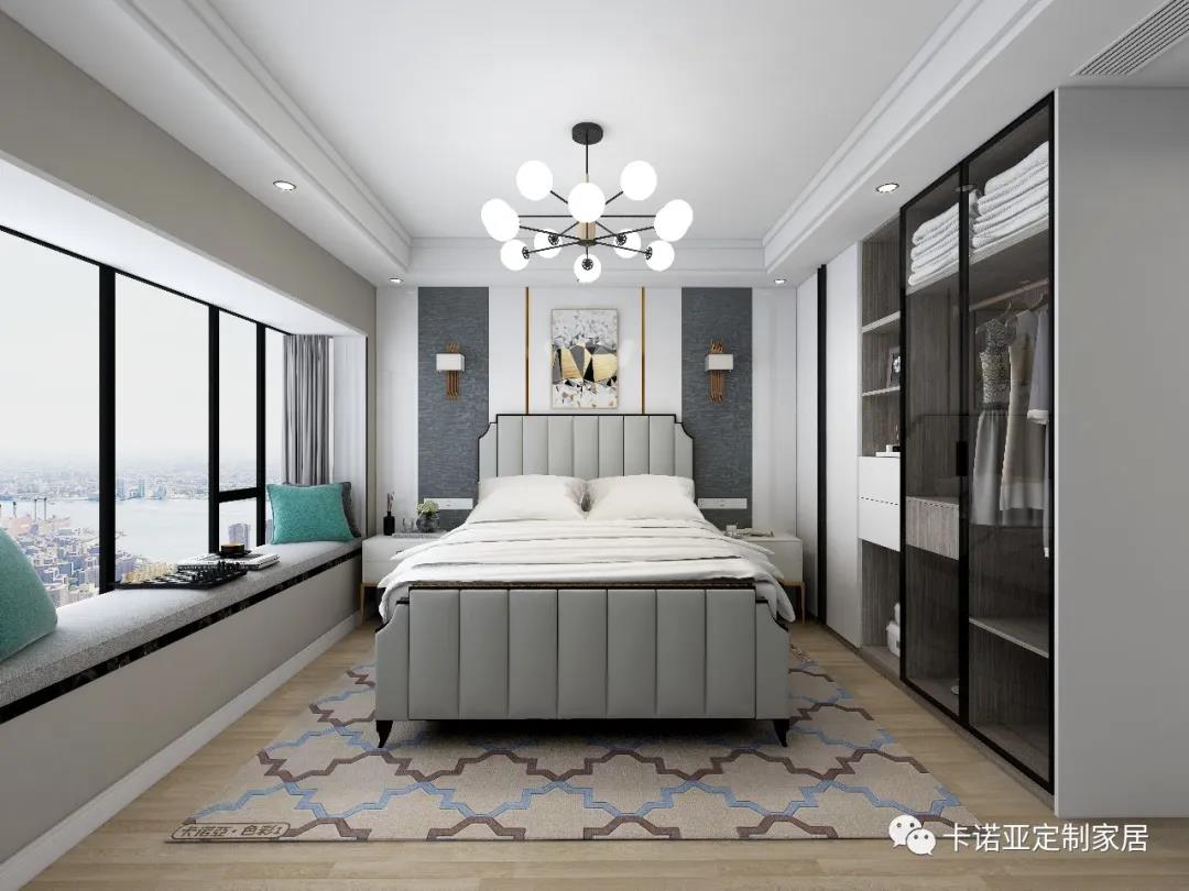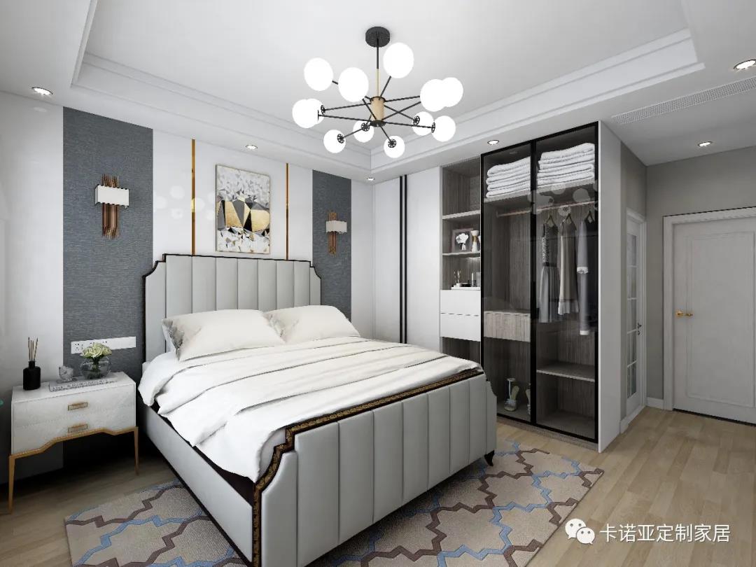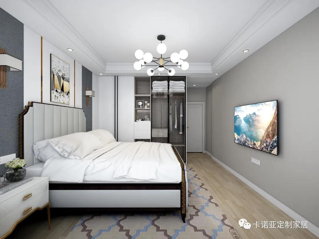 主臥以白色為主色調(diào),深色為輔助色