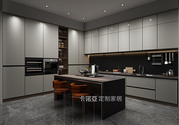 廚房是整面純白色,沒有多余復雜的設計,在靠墻的一面設置立體置物架,可以放一些調(diào)料和炊具。