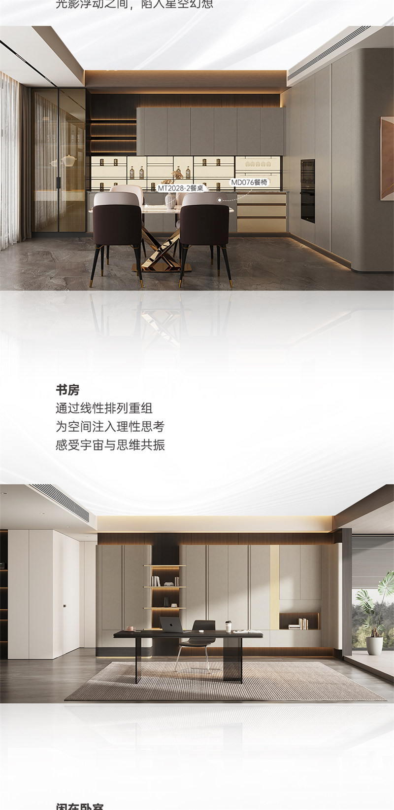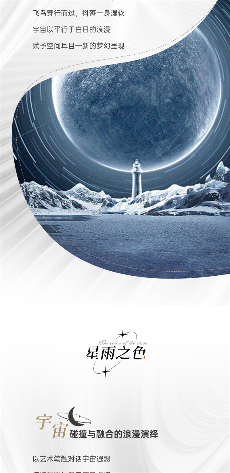 2024年新品系列,星雨 |雅奢風(fēng)格 該系列產(chǎn)品采用柔和的色彩搭配和浪漫的元素點(diǎn)綴,打造溫馨浪漫的家居氛圍。通過線性排列重組為空間注入理性思考感受宇宙與思維共振