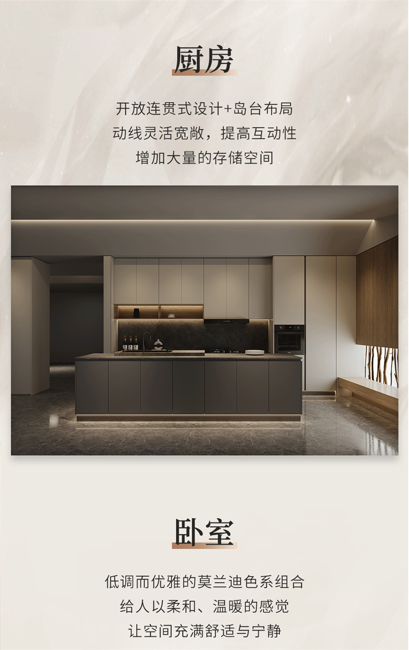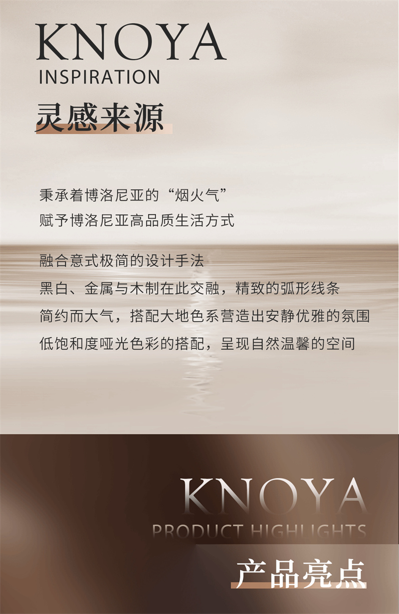 博洛Ⅱ | 極簡風格質感生活 內外兼修 有顏有質 健康環(huán)保融合意式極簡的設計手法,黑白、金屬與木制在此交融,精致的弧形線條簡約而大氣,搭配大地色系營造出安靜優(yōu)雅的氛圍,低飽和度啞光色彩的搭配,呈現自然溫馨的空間。
