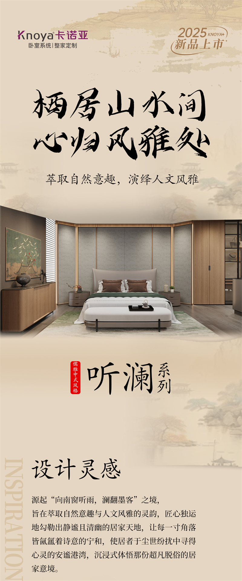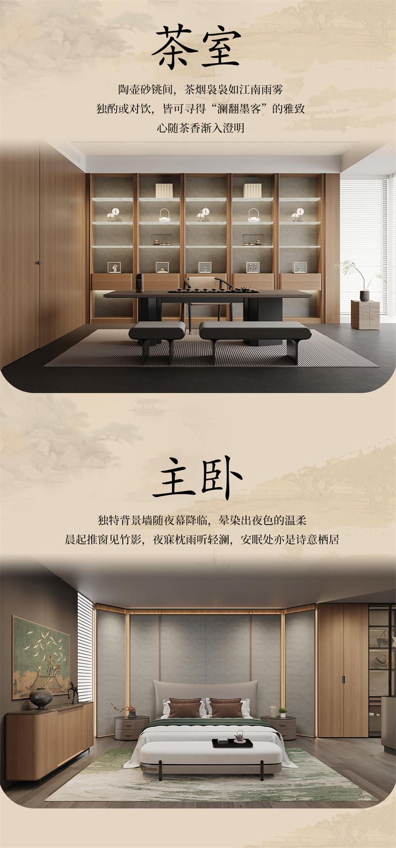 2025年新品系列,聽瀾系列 |儒雅中式風(fēng)格源起“向南窗聽雨,瀾翻墨客”之境,旨在萃取自然意趣與人文風(fēng)雅的靈韻,匠心獨(dú)運(yùn)地勾勒出靜謐且清幽的居家天地,讓每一寸角落皆氤氳著詩(shī)意的寧和,使居者于塵世紛擾中尋得心靈的安謐港灣,沉浸式體悟那份超凡脫俗的居家意境。