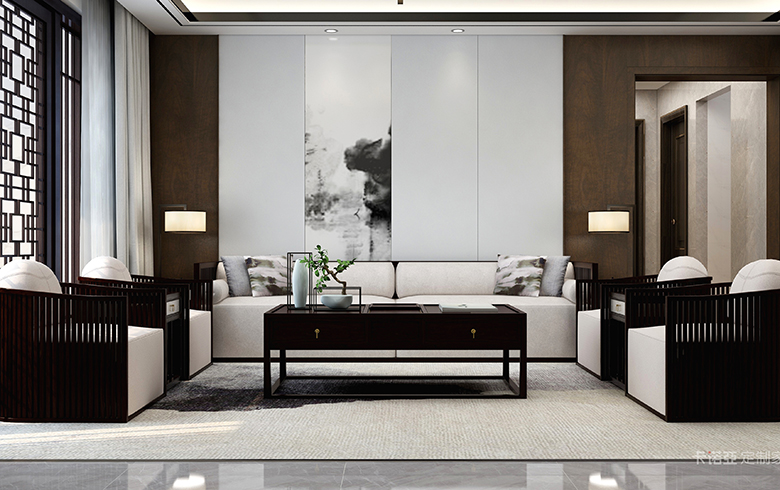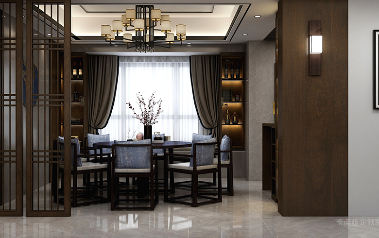 客餐廳整墻采用煙雨江南系列護墻板,整體空間呈灰、白色調(diào),白墻粉黛的水墨江南被巧妙的搬入到居室之中;而軟裝的黃、藍色調(diào)點睛之作則來自江南的春天色彩,記憶中的江南藍花布,將江南水鄉(xiāng)自然、人文之美也帶進居室生活中。為了空間以及風格的統(tǒng)一性,將原有的歐式吊頂和西廚櫥柜拆除,重新設(shè)計為備餐區(qū)域,柜子采用黑檀香撞印象白,護墻板配以柔和穩(wěn)重、不事張揚的“太空石”灰,仿佛可以看見居者身上所散發(fā)出的柔和低調(diào)、優(yōu)雅的江南氣質(zhì)!煙雨、詩詞,這是記憶中的江南;白墻、黛瓦、青石板路,這是印象中的江南;江南不僅是一個地域,也是是一種觀念,一種現(xiàn)代人趨之若鶩的生活方式,更是當代中國人的居室夢想!