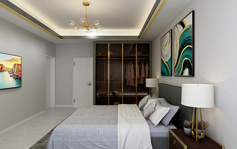 房屋空間四室兩廳兩衛(wèi),套內(nèi)面積111平米,四室分別是主臥,次臥(榻榻米),書房,衣帽間,滿足了三口之家的日常使用需求,使空間利用率達(dá)到最大化。全屋柜體采用深色板材,運(yùn)用玻璃門和淺色門板配金色拉手,通過棚線和家具顏色的搭配來達(dá)到風(fēng)格統(tǒng)一,打造輕奢風(fēng)格。客餐廳通過金色家具和軟裝,淺色的壁紙,體現(xiàn)溫馨的氛圍。
