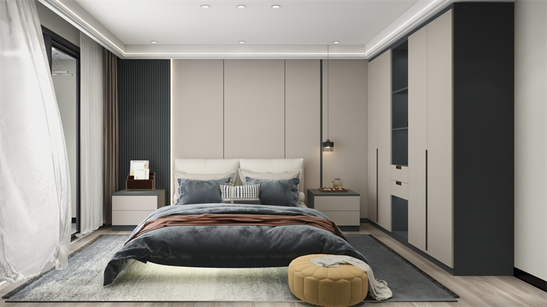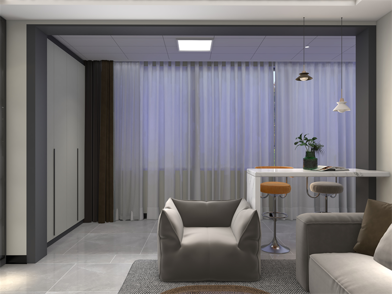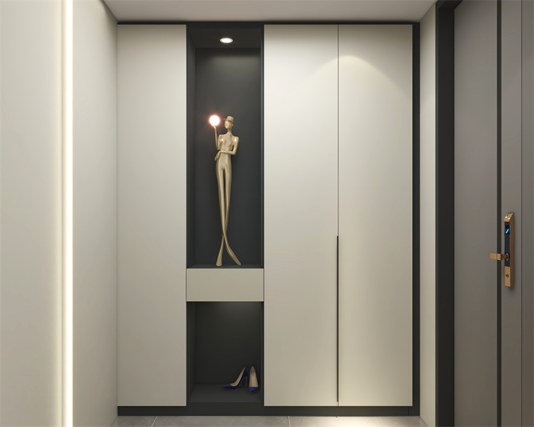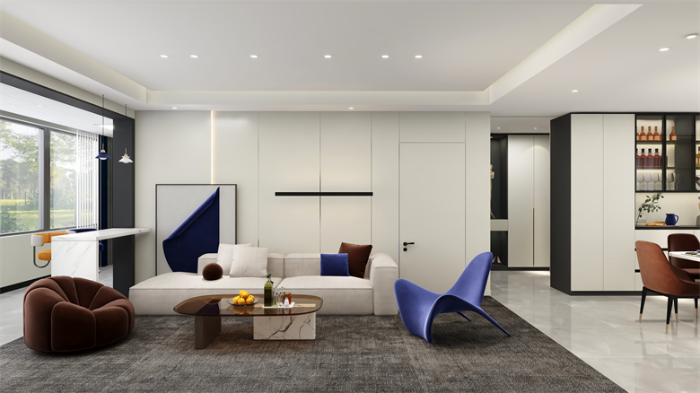 整體風格為現(xiàn)代簡約風。整個空間做到了柜墻門一體化,色系統(tǒng)一協(xié)調(diào)。柜體柜門運用了澀黑,澀感白兩個顏色。軟裝上冷暖色調(diào)隨意搭配。材料上整個采用了糠醛板,環(huán)保、堅固還防潮。家里老人小孩都不用擔心。收納區(qū)域也是足夠多,做到了美觀且實用。設(shè)計理念:以人為本 ,設(shè)計有歸屬感的家,做有溫度的設(shè)計師。整家之美|第五屆卡諾亞杯全國家居空間設(shè)計大賽