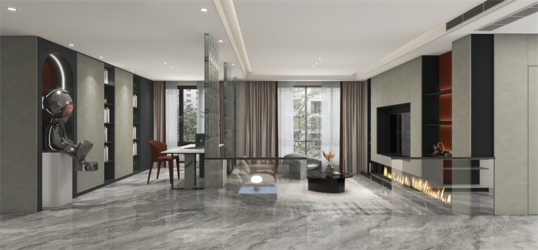 對于這套戶型的定義是實用的基礎(chǔ)上滿足業(yè)主時尚又年輕化的需求。整體空間從入戶到客餐廳都有一套強有力的流線進(jìn)行引領(lǐng)。比如燈光的運用,材質(zhì)的拼接和反光的處理都更好的表現(xiàn)了空間的質(zhì)感和通透性。 空間的整體動線為業(yè)主更好的規(guī)劃了日常生活的走向,根據(jù)對業(yè)主年輕化和職業(yè)的分析,在設(shè)計中添加了手辦裝飾以及對職業(yè)需求的一些理解。