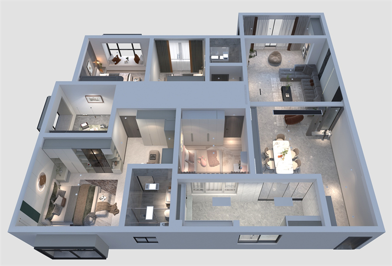 本案以現(xiàn)代簡約風為主要設計特色,黑白灰色調相托,重視室內的使用功能,強調室內布局與功能分區(qū),家居陳設與空間的密切配合。設計理念: 將設計融入人性 將家居帶入休閑自在的情境整家之美|第五屆卡諾亞杯全國家居空間設計大賽