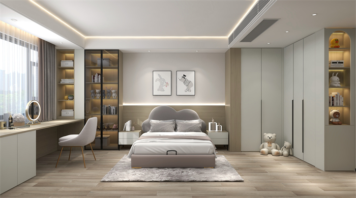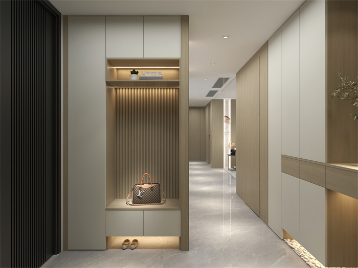 作品簡介:以簡單的白和溫暖的木紋色為主,勾勒出低調(diào)極簡的風(fēng)格。因?yàn)榭蛻舻穆殬I(yè)是醫(yī)生,喜歡干凈純粹的住所,所以大部分都采用白色為主打色,少量采用原木色作為搭配, 顯得自然清新略帶暖意,形成樸素的自然風(fēng)格。
