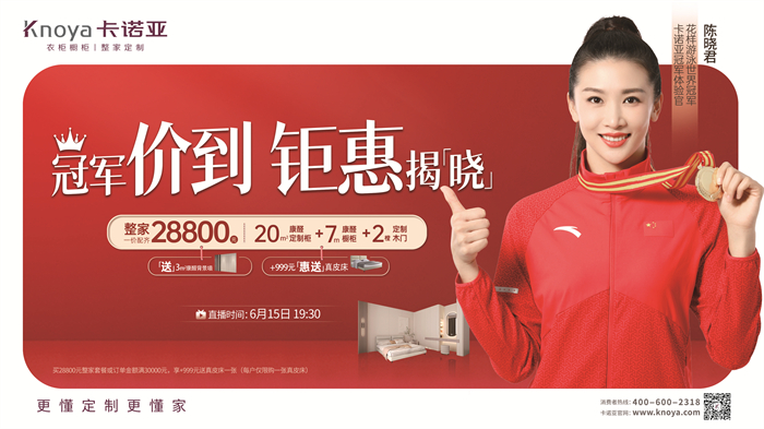 2023年6月15日,“618年中鉅惠|總部千萬補(bǔ)貼計(jì)劃,定整家+999元惠送真皮床”618狂歡大促還在火熱進(jìn)行之際,卡諾亞將攜手花樣游泳世界冠軍陳曉君,重磅開啟“冠軍價(jià)到,鉅惠揭「曉」”超級(jí)直播活動(dòng),花樣游泳世界冠軍陳曉君攜花樣寵粉福利空降直播間,帶大家進(jìn)階高顏高品整家家居生活。