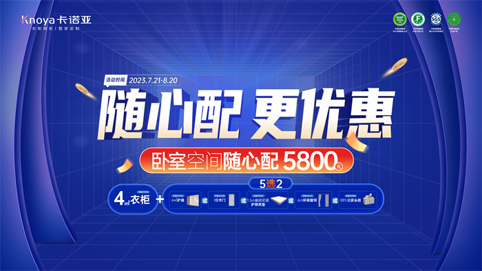 流火七月,為回饋新老客戶的鼎力支持,卡諾亞整家定制將于7月21日-8月20日,火熱展開以“隨心配,更優(yōu)惠”為主題的福利活動。除了一年一次的煥新服務(wù)貼心送到家之外,卡諾亞此次特地推出臥室空間隨心配5800元精品套餐,含4㎡衣柜+(4m護(hù)墻、1樘定制木門、1.5m護(hù)脊床墊、6米A級母嬰環(huán)保窗簾、1對床頭柜)(5選2),自由選擇自由搭配,還推出經(jīng)典的康醛整家套餐28800元、舊廚煥新套餐、EP環(huán)保漆整家套餐38800元等,滿足年輕消費(fèi)者的個(gè)性家裝需求。