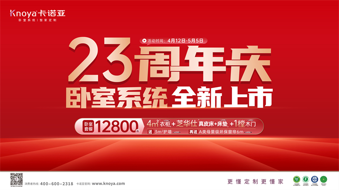 伴隨五一裝修黃金周臨近,恰逢卡諾亞23周年慶臥室系統(tǒng)盛大發(fā)布之際,為滿足消費(fèi)者的品質(zhì)消費(fèi)需求,卡諾亞五一盛惠風(fēng)暴于4月12日到5月5日強(qiáng)勢(shì)登陸全國(guó)各地專賣店,包含12800元臻選臥室套餐、11800元享在臥室套餐、10800元學(xué)在臥室套餐、28800元康醛整家套餐、8999元全屋配套家品套餐、舊櫥煥新套餐等,下定即享4大超值福利,帶來(lái)高質(zhì)價(jià)比的促銷盛宴,為不同消費(fèi)群輕松定制不一樣的專屬生活方式。