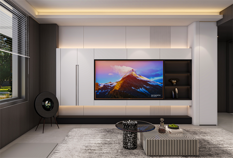 電視背景墻采用簡潔流暢的線條,與簡約的“晨露白”色彩完美融合,弧形轉(zhuǎn)角過渡,展現(xiàn)一種簡約而不失精致的柔美感。電視柜采用高端定制精湛工藝,包括黑科技的懸浮設(shè)計(jì)+柜中柜設(shè)計(jì)+拉米諾/無孔工藝,打破傳統(tǒng)墻面的厚重感,賦予空間輕盈靈動(dòng)的觀感。