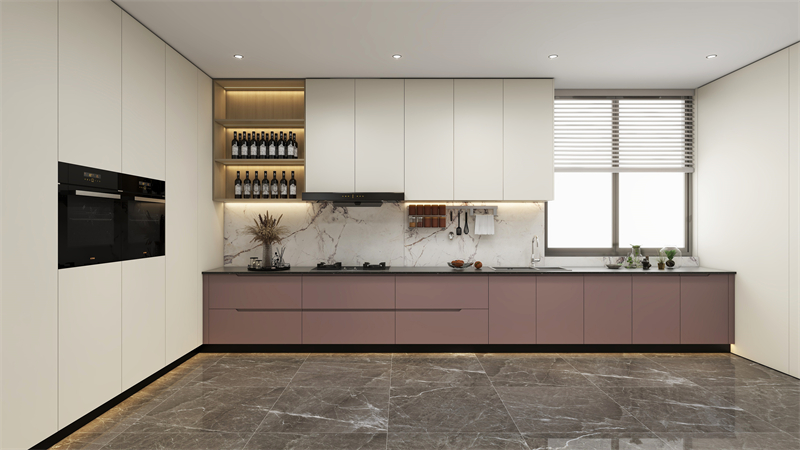 針對(duì)廚房潮濕高溫的特殊環(huán)境,櫥柜采用噴粉定制柜,360°環(huán)繞防潮覆蓋,耐黃不變色,樹脂粉末高溫固化,色彩更耐看,打造高級(jí)溫柔的廚房?!芭悍邸迸c“白芷”搭配,溫暖柔和的色調(diào),清新唯美的廚房空間,實(shí)現(xiàn)功能和美觀的統(tǒng)一,讓下廚時(shí)光變得優(yōu)雅從容。