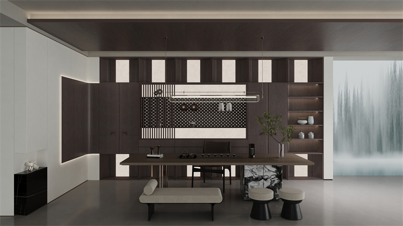 設(shè)計靈感:藏玉系列以在中國文化中象征“仁、義、禮、智、信”五德的玉石為靈感源泉,結(jié)合藏物之雅與玉之恒久的特質(zhì),延伸出“形、質(zhì)、氣、韻、神”的五重設(shè)計理念。旨在以小見大、步移景異,將古樸東方的風(fēng)雅格調(diào)與現(xiàn)代生活的隱奢雅境完美融合,營造層次遞進的空間情緒。