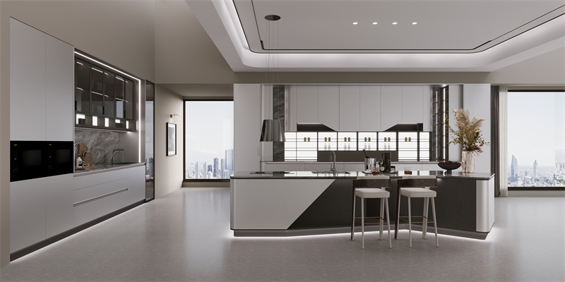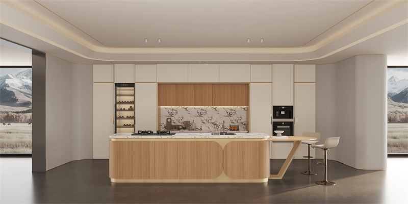 ·原創(chuàng)設(shè)計(jì)語(yǔ)言:源自鉆戒輪廓的門(mén)型,以戒指拉伸開(kāi)的獨(dú)特輪廓融入門(mén)型設(shè)計(jì),以左右圓弧+上下裝飾線勾勒立體層次,搭配鋅合金拉手,是功能與藝術(shù)、創(chuàng)新的完美融合;游艇造型中島臺(tái)與花瓣門(mén)板的組合,將豪華游艇的美學(xué)融入廚房空間。
