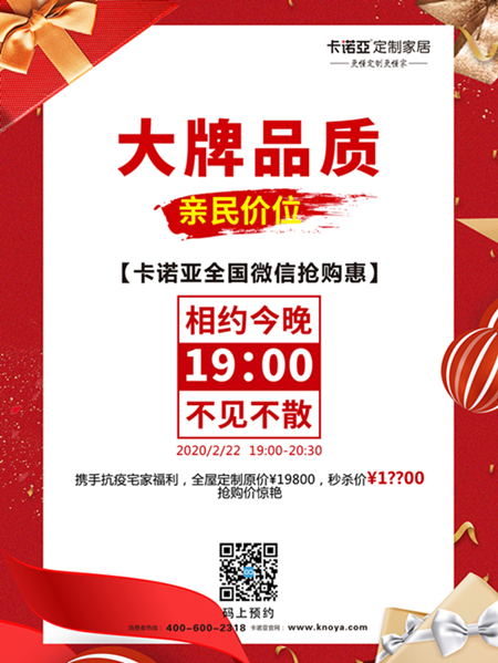 被疫情隔離的潛在裝修需求,有了線上的助力,迅速爆發(fā)出巨大潛力。眼下部分企業(yè)剛剛開始復(fù)工,物流也尚未恢復(fù)正常,對于有裝修需求的用戶而言,提前做好裝修規(guī)劃,未嘗不是宅家的另一種選擇。因此,卡諾亞采取線上微信搶購、限時優(yōu)惠等多元銷售模式,并加強(qiáng)與線上消費(fèi)者的溝通和互動,2月27日還將開啟“卡諾亞定制家居3·15品質(zhì)直播盛典”。至此,卡諾亞率先掀起的新零售模式,將成為疫情期間家裝銷售的重要渠道。
