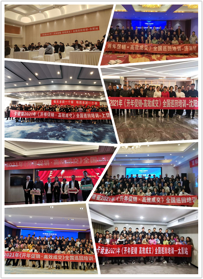 據(jù)悉,卡諾亞定制家居2021年第一季度區(qū)域會議暨開年促銷高效成交全國巡回培訓(xùn),分別在沈陽、西安、天津、太原、重慶、廣州、長沙、武漢、鄭州、濟(jì)南、上饒、合肥等近20個城市圓滿舉行。