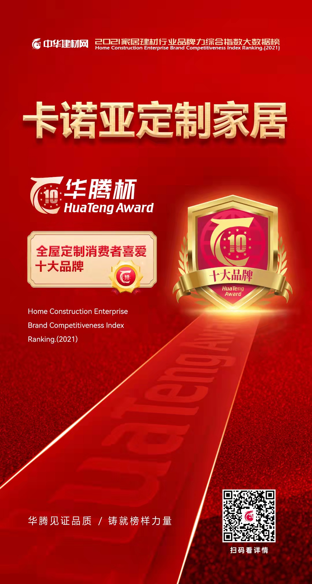 9月1日,由中華建材網(wǎng)主辦的“華騰杯·2021家居建材行業(yè)品牌力綜合指數(shù)大數(shù)據(jù)榜”重磅揭曉,卡諾亞定制家居憑借品牌綜合實(shí)力,榮獲“全屋定制消費(fèi)者喜愛十大品牌”,彰顯公司在產(chǎn)品、設(shè)計(jì)及服務(wù)層面滿足新消費(fèi)升級(jí)需求,助力中國消費(fèi)者對(duì)高品質(zhì)家居和幸福生活的追求。