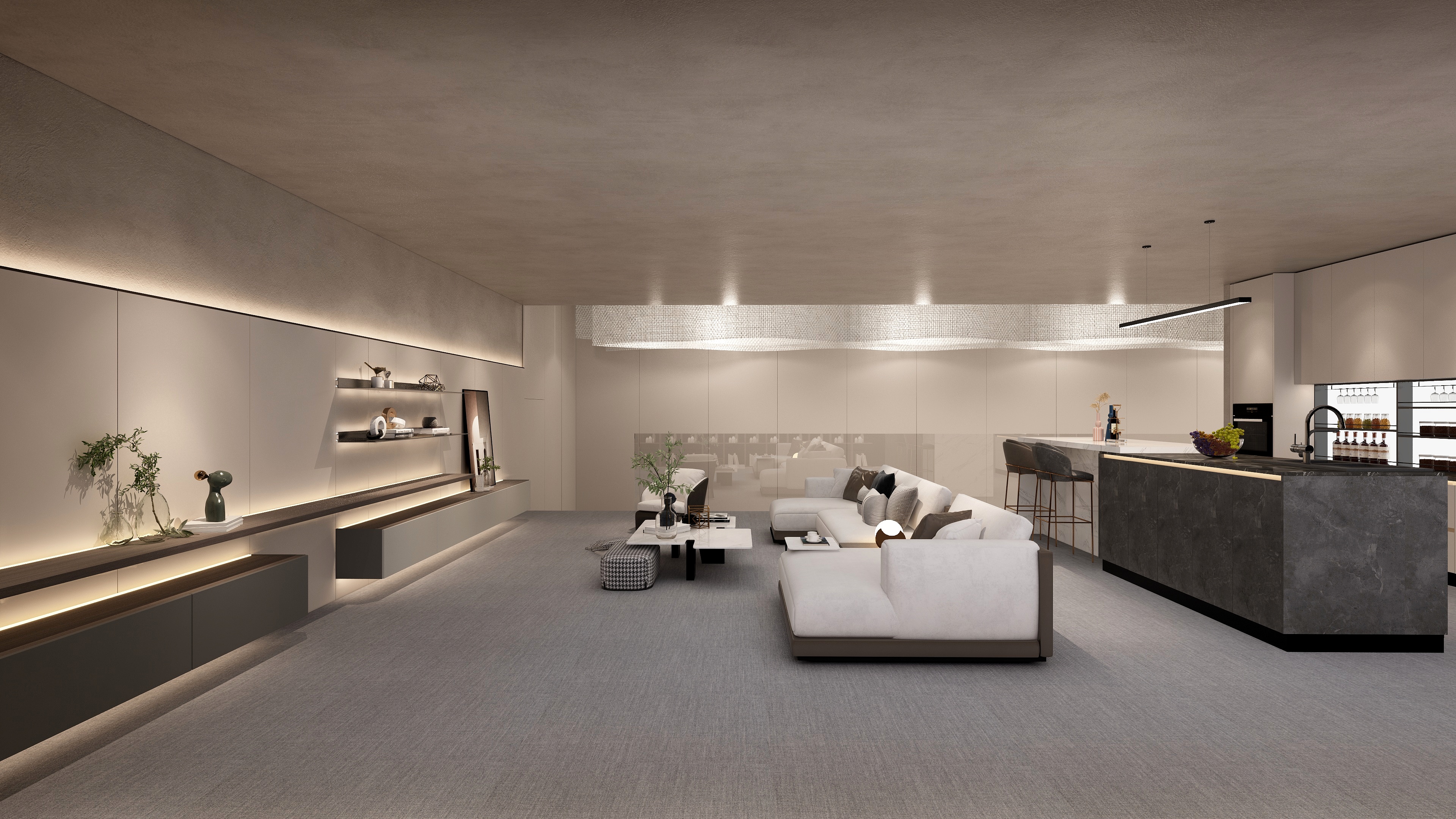 本屆展會(huì)卡諾亞展館,采用全新的MIX混搭設(shè)計(jì)理念,現(xiàn)代風(fēng)格與輕奢風(fēng)格創(chuàng)意混搭,展館樣板間給人耳目一新之感,采用同步國際潮流家居的輕奢花色,如澀黑、星光灰、云巖灰、和風(fēng)木、流光淺棕、流啞淺棕等,通過設(shè)計(jì)師的巧妙搭配和撞色設(shè)計(jì),淡雅的色調(diào)搭配莫蘭迪色系,營造充滿色彩立體層次質(zhì)感的精致空間。